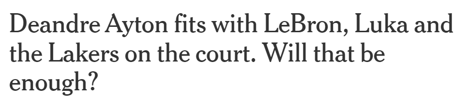 湖人队在今年休赛期有着双重目标:既要补强上赛季的阵容,又要保留足够的灵活性,为围绕东契奇打造最佳阵容做准备。而签下艾顿莫名其妙地同时实现了这两个目标。当然,这是因为开拓者队正支付着艾顿约2600万美元的年薪。艾顿当初会去开拓者,也是因为太阳队不想要他了,乐意用他换来努尔基奇。The Athletic的贾森-奎克曾详细报道过艾顿在被开拓者队买断后,是如何没能达到球队预期的。而在洛杉矶,聚光灯会更亮,比赛的要求只会更高。