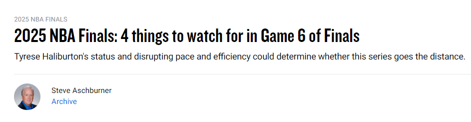 北京时间6月20日上午8点30分,总决赛G6将开打。目前总比分是雷霆3-2领先步行者。G6会有怎样的剧情上演?NBA官网列出了总决赛G6值得关注的四大看点——